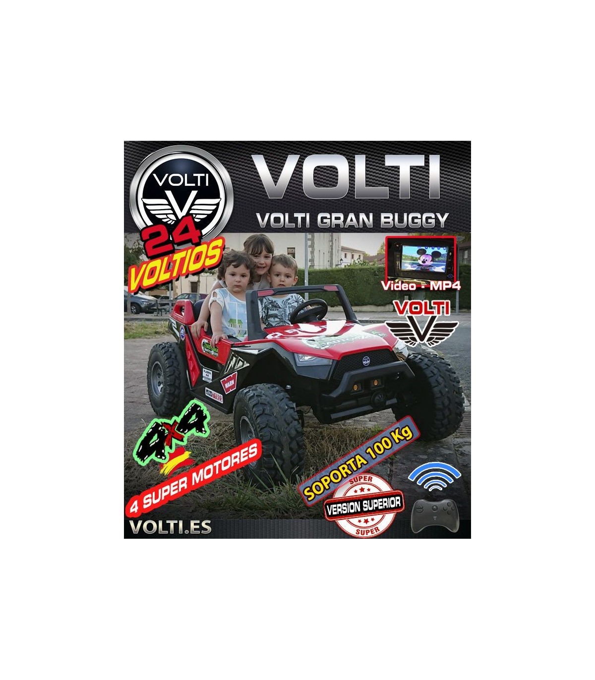 3 años de garantía contra defecto de fabricación.VOLTI VENDE SIEMPRE EN TODOS SU MODELOS, COCHES CON RUEDAS DE GOMA CAUCHO EVA , mayor agarre, bajo ruido, e irrompibles, asientos tapizados, y dos o más motores de tracción, coches siempre potentes, de 12 voltios en adelante).