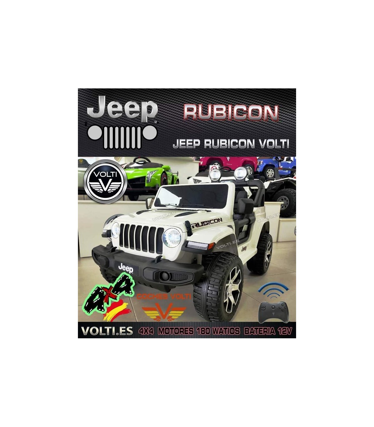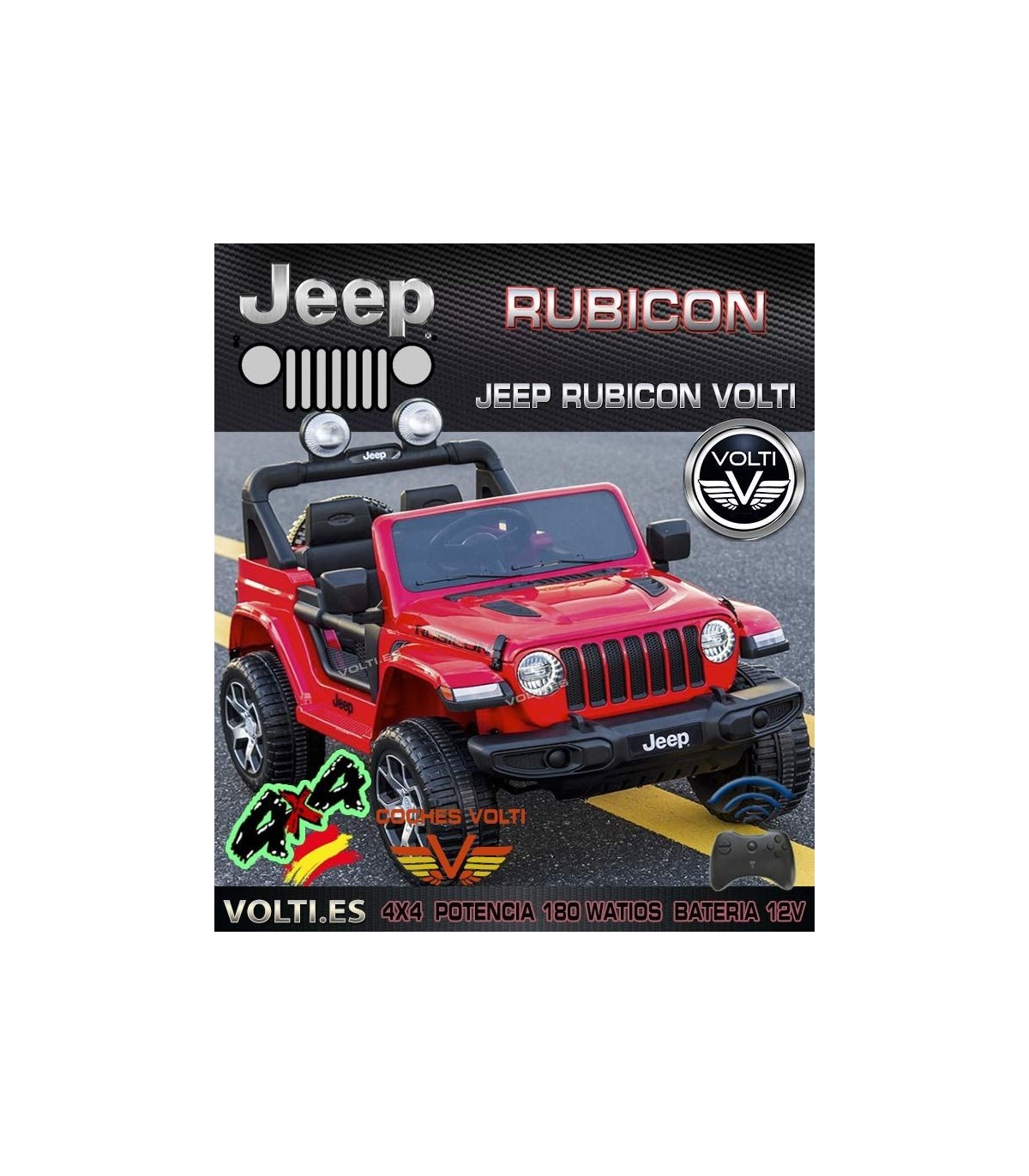 JEEP RUBICON POTENCIA 180 WATIOS 4x4. Funciona con sin mando radiocontrol.