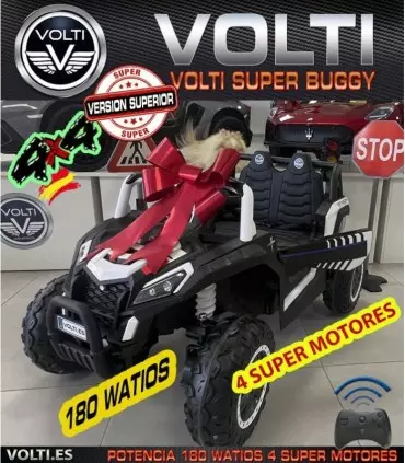 BUGGY 180 POTENCIA WATIOS TODOTERRENO 4X4, VERSION SUPERIOR 4X4 CON 4 MOTORES DE 45 WATIOS CADA UNO, ( Es más rápido que otros de su linea) RUEDAS DE GOMA DURADERA, NO PATINA, BAJO RUIDO Y MAYOR BATERIA.