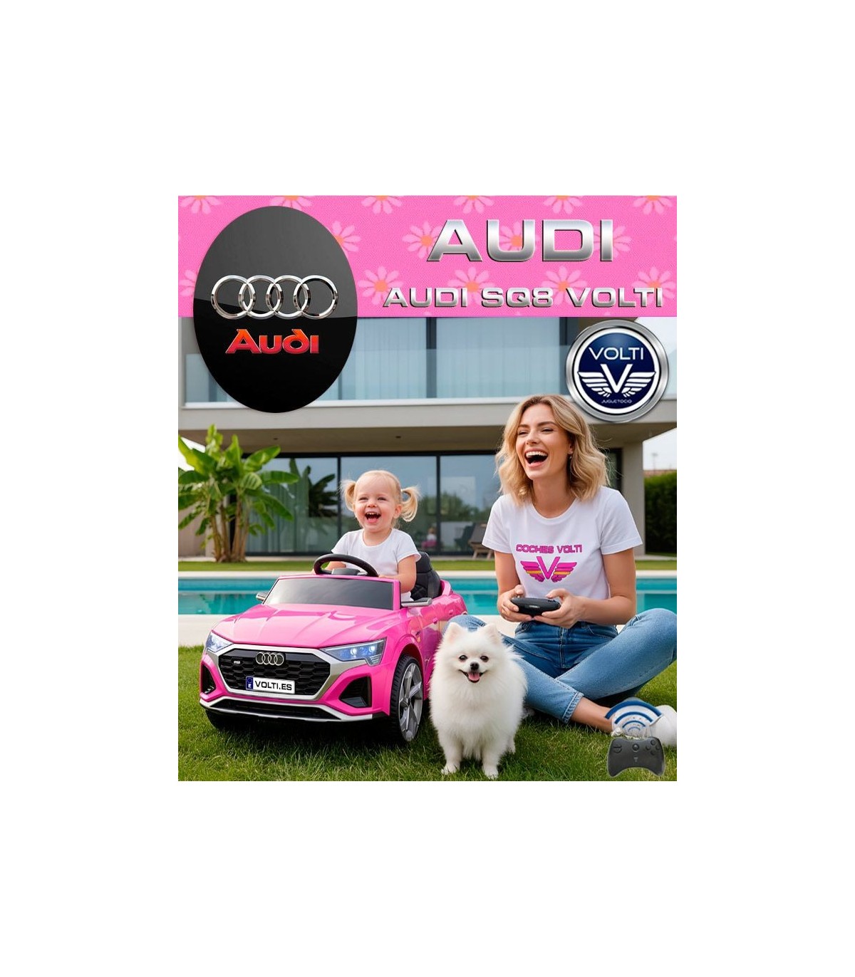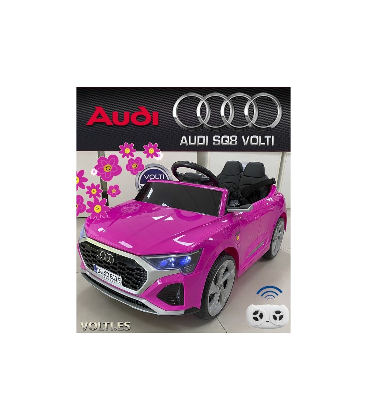 | AUDI SQ8 2 MOTORES TRACCIÓN TRASERA, con dos ruedas de goma caucho motrices, Bateria de 12 voltios 4.5 AH. RUEDINES y asidedero para su fácil transporte. Asiento tapizado para mayor confor con cinturón de 5 puntos de anclaje. |