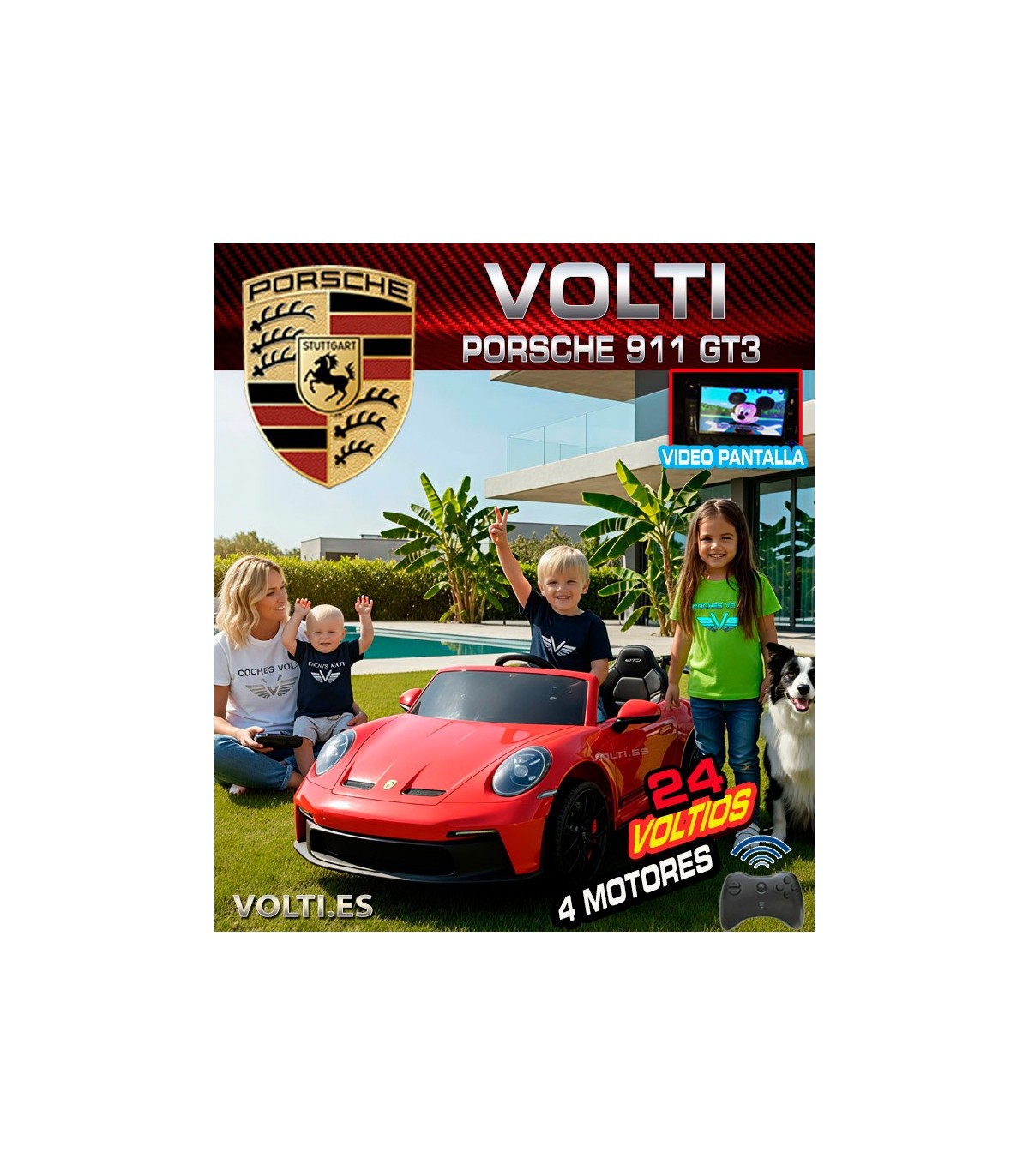 PORSCHE PARA NIÑOS 911 GT3 BIPLAZA CON MANDO 4 MOTORES, TRACCIÓN TOTAL A LAS CUATRO RUEDAS,