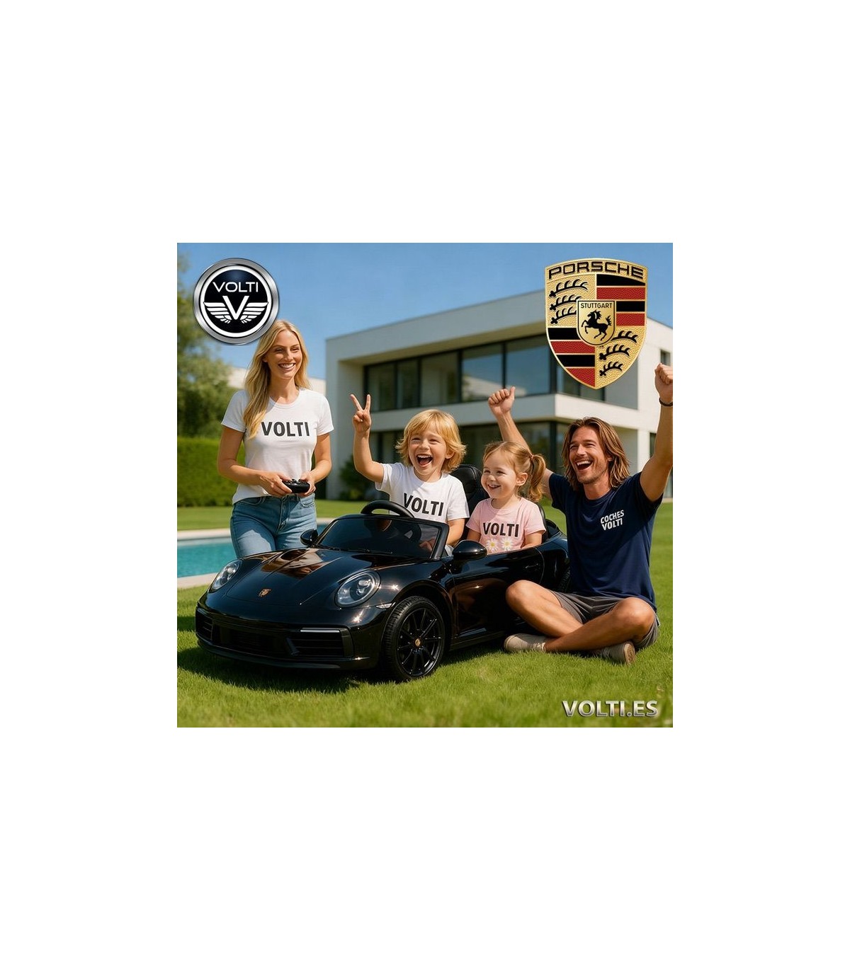 PORSCHE PARA NIÑOS  - Licensed by PORSCHE.El juguete se entrega parcialmente montado. (Fácil y sencillo armarlo). 3 años de garantía contra defecto de fabricación.VOLTI VENDE SIEMPRE EN TODOS SU MODELOS, COCHES CON RUEDAS DE GOMA CAUCHO EVA , mayor agarre, bajo ruido, e irrompibles, asientos tapizados, y dos o más motores de tracción, coches siempre potentes, de 12 voltios en adelante.
